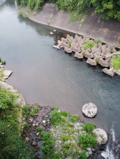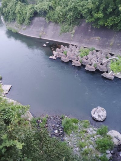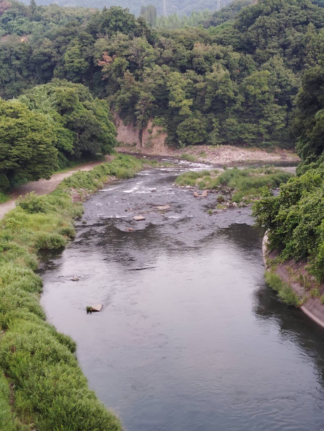 笹子川 昨日の夕立で上流の山間部で大雨 濁りが入っている