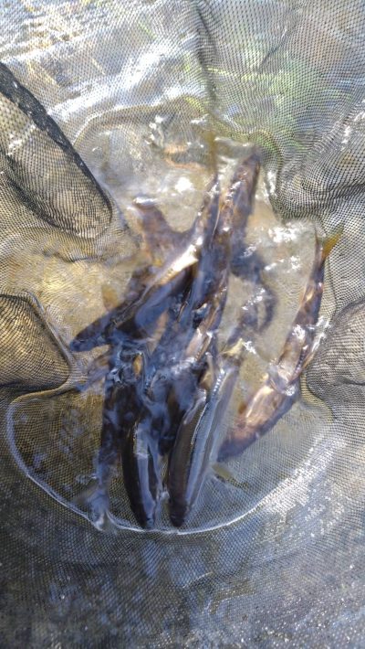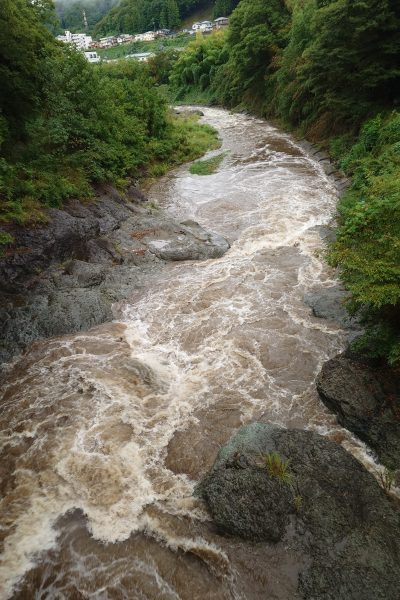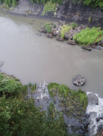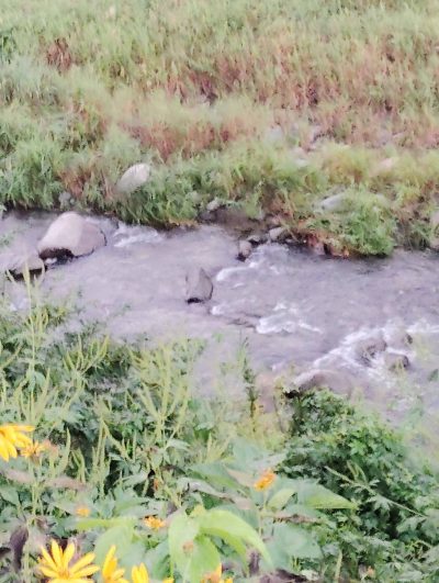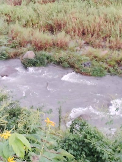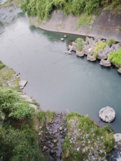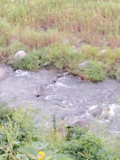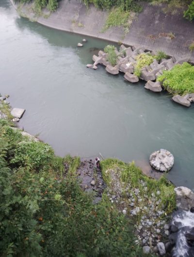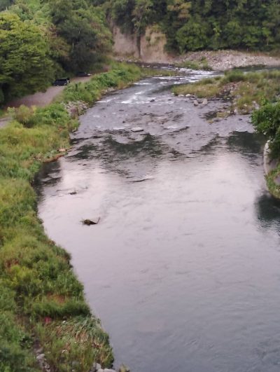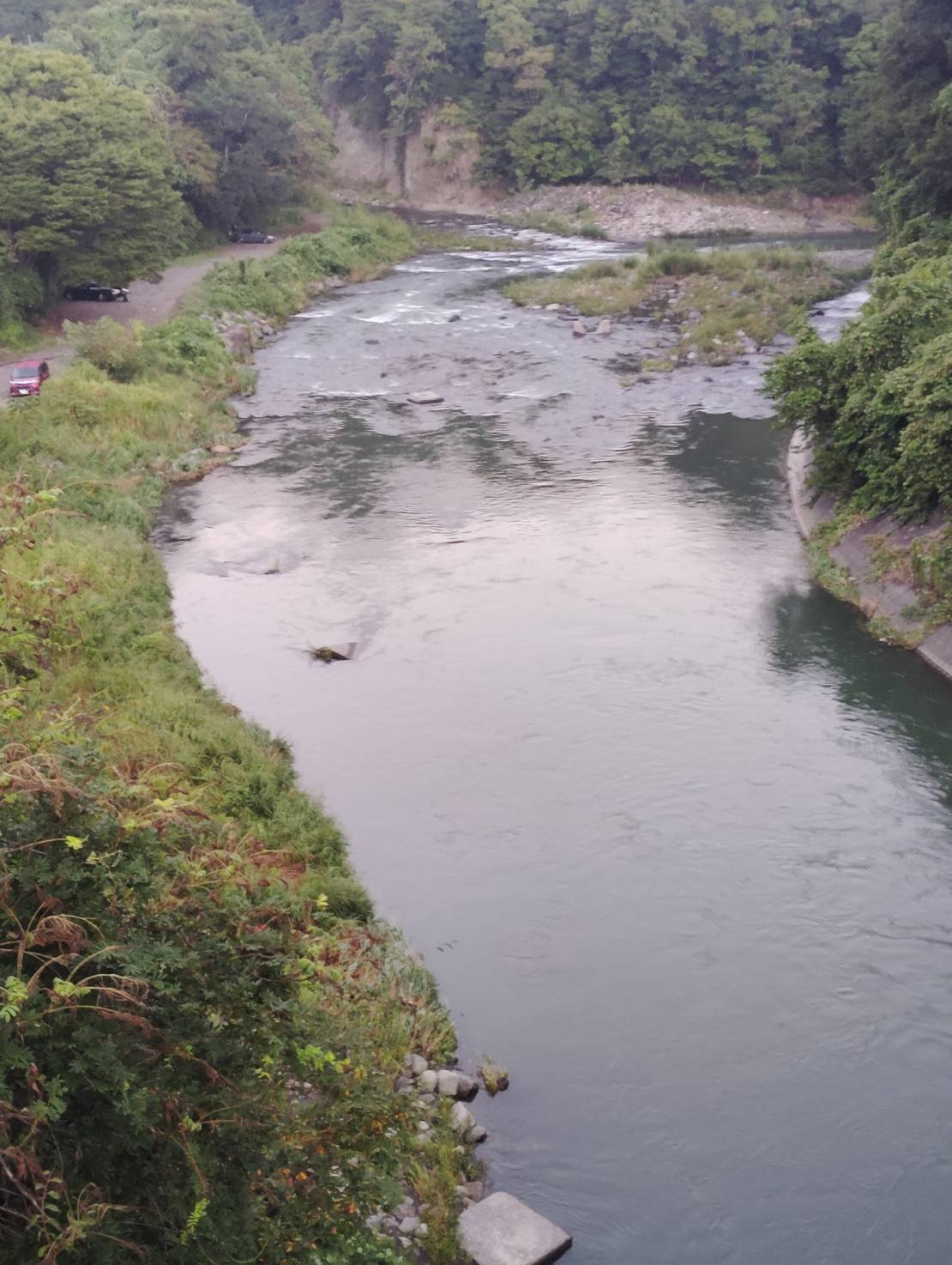 笹子川 下流です。水位はまだ30cm高く、ササ濁りですが増水の後でもまだまだ魚は居るようです。