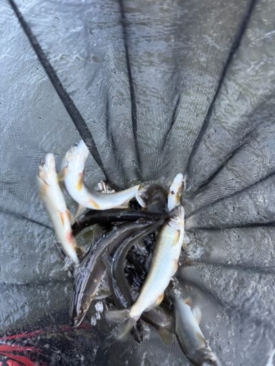 秦野の渡辺です。水位が高い中で1ヶ所で釣りました。